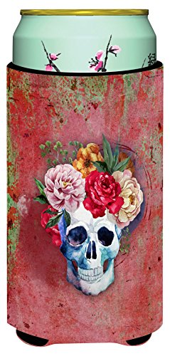 Caroline's Treasures Day of The Dead Red Flowers Skull Tall Boy Beverage Insulator Hugger, Multicolor