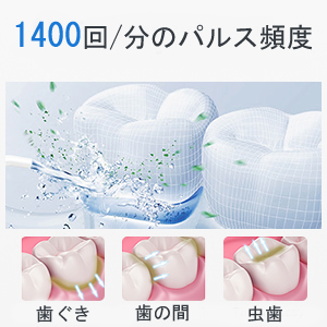 ????4、振動数約1,400回/分のパルス頻度で食べかすを素早くに歯間からはじき出す。