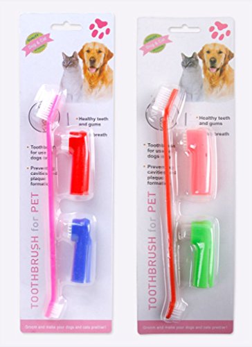 -. Feature : Remove Bad Breath, prevent the oral disease / The finger brush head so soft that will not hurt gums, puppies available / Dual Headed brush clean the foreteeth,finger brush clean the molars / The finger brush ensure you to completely clean the area hard to reach / More effective and cheaper than looking for a veterinarian to brush your pet's teeth