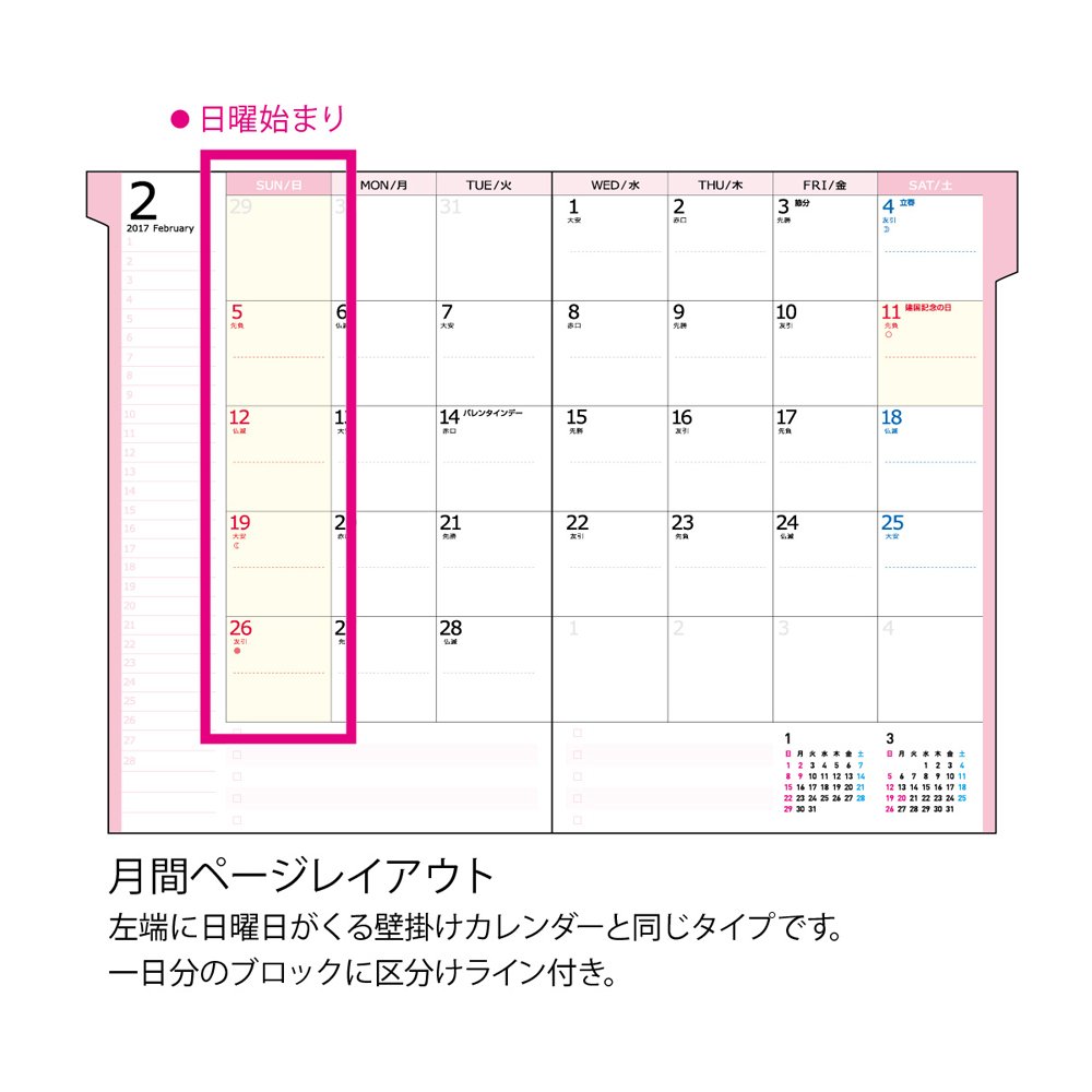 · In the monthly page layout, a large entry frame and a clear character are popular types, with a division line for one day's block.