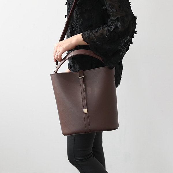 |  수납력이 중요한 분들이라면 주목! 수납력과 세련된 무드를 동시에 살려주는 데일리 토트 아이템 추천해드릴게요 :) 넉넉한 사이즈와 타원형 바닥으로 우수한 수납력은 기본이구요 가방 중앙에는 세로선으로 라인이 들어가있구요 금장 포인트가 들어간 스트랩이 더욱 세련되보여요 바닥의 쳐짐이 없도록 탄탄하게 덧대어져 있어 늘어짐 없이 오래오래 활용할 수 있어요 크로스 스트랩 너비가 넓어서 많은 물건을 수납하더라도 편안해요 상세페이지 확인 후 굿초이스 해주세요! *모델 착용 컬러 - BURGUNDY(버건디) / DARK BEIGE(다크베이지)         | COLOR | 버건디 / 다크베이지 / 블랙 / 블루 / 카멜 / 아이보리 | | 제품 색상은 모니터에 따라 실제 색상과 차이가 있을 수 있습니다. | | | | FABRIC | 합성피혁 | | | | PRODUCTION | 제조국 / 국내 | | 품질보증기준 / 소비자분쟁 해결기준에 따름 | | A/S 책임자 및 고객센터 / 감성가방 | | | | SIZE INFO | 사이즈는 측정 방법에 따라 1~2cm의 차이가 있을 수 있습니다. | | 스트랩 길이는 연결 고리를 제외한 길이이며, 최대 길이입니다. | | (단위:cm, g) | | 가로 길이 | 세로 길이 | 너비 | 손잡이 높이 | 스트랩 길이 | 무게 | | 25 | 28 | 14 | 12 | 48(조절x) | 650 |  |