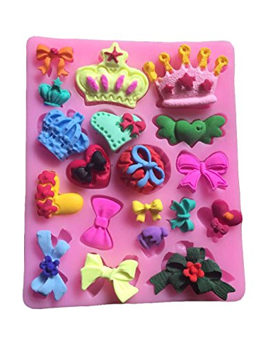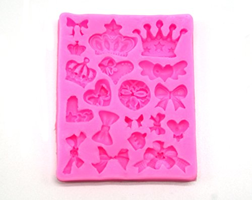 FLYKA Crown Bowknot Fondant Mold Silicone Soft Pink 3.75"x3.5"
