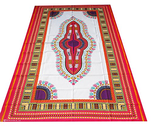 RaanPahMuang African Dashiki White Cotton Fabric Suitable for 1 Shirt Design, Multicolour Pink