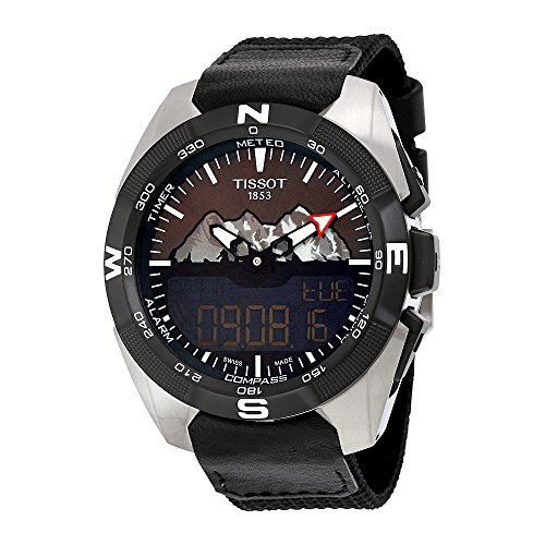 Studio : Tissot Publisher : Tissot Binding : Watch Product Description Titanium case with a black synthetic bracelet. Fixed bezel. Black dial with black hands and index hour markers. Dial Type: Analog-digital. Luminescent hands and markers. ETA E84.301 quartz movement. Tactile scratch-resistant sapphire crystal crystal. Solid case back. Case size: 45 mm. Round case shape. Buckle clasp. Water resistant at 100 meters / 330 feet. Functions: hour, minute, second, compass, altimeter, 2 alarms, countdown timer, eol, meteo, second time zone, backlight, perpetual calendar, accumulator charge indicator. Sport watch design. Watch label: Swiss Made. Tissot T-Touch Perpetual Mens Watch T091.420.46.051.10. 0