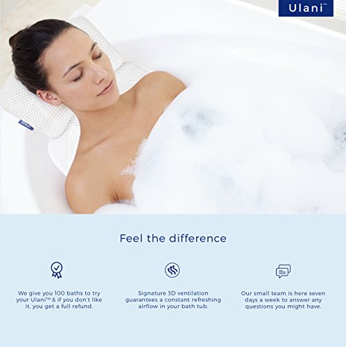 - FULL BODY BATH MAT & BUILT-IN PILLOW - Indulge in a unique bath relaxation with Ulani™ - the one-of-a-kind body cushion and its built-in detachable ergonomic pillow for extra soft head support (will release the pressure off your tailbone & back).
