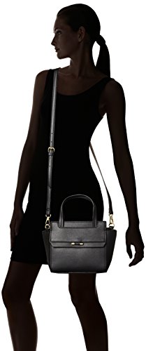 Midsize faux leather bag featuring twin top handles and adjustable cross-body strap