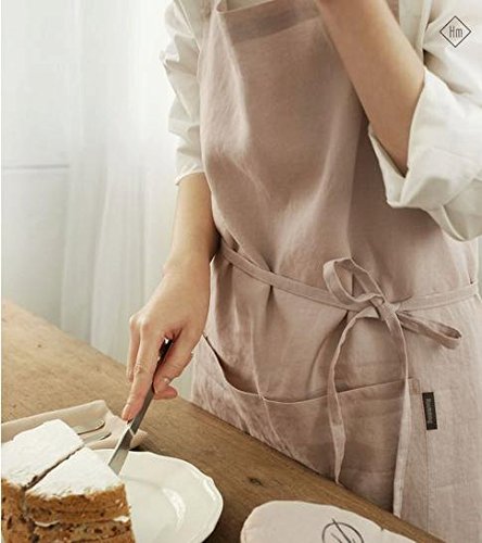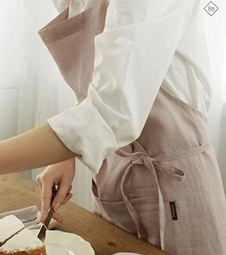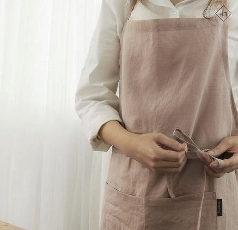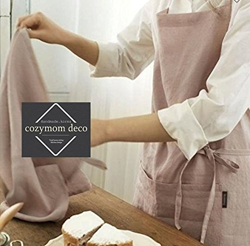 Cozymom Linen 100% Premium Gift Chef Works Handmade Apron Japanese style Cross back Shape Cotton APRON-Indipink color