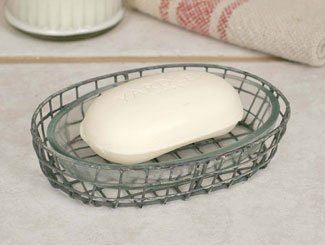 Oval Glass Soap Dish in Galvanized Metal Tray