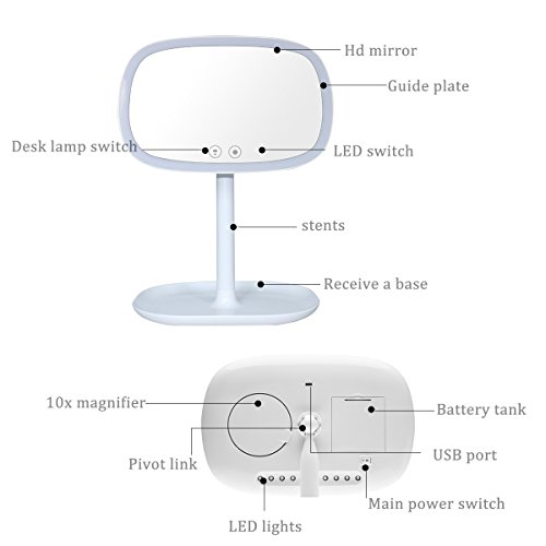 - UNIQUE LAMP DESIGN: The make mirror can rotate 360 degrees. With 10 pcs of LED light beads in the back and a button in the mirror surface, the mirror can also be used as a table lamp set on the study, bedroom.