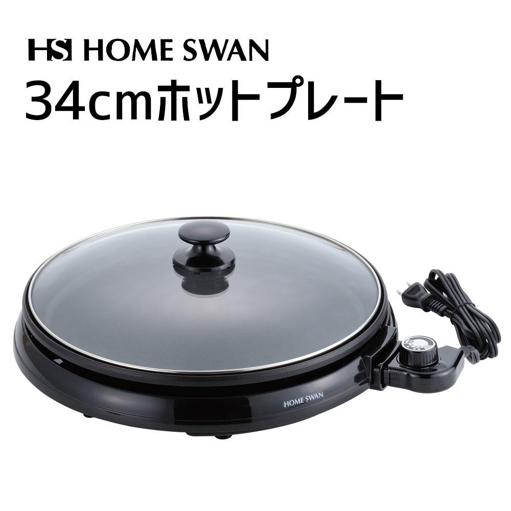 たくさん焼くことができる、直径34cmのホットプレートです。エンボス加工とふっ素樹脂加工でこびり付きにくい!!便利なフタ付♪ |