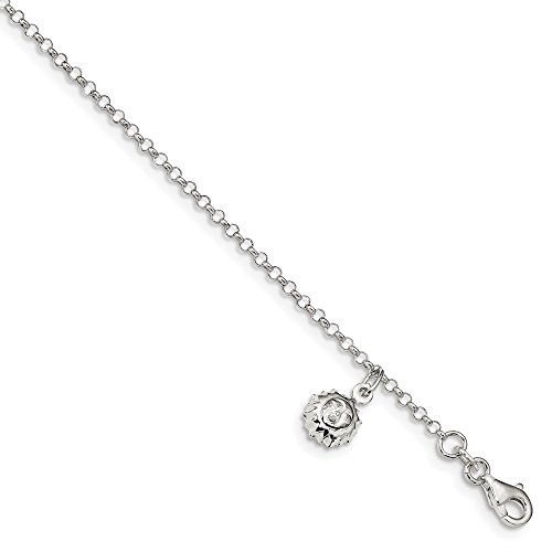 Solid 925 Sterling Silver Sun 10 inch with 1 inch ext. Anklet 10" - with Secure Lobster Lock Clasp (1.5mm)