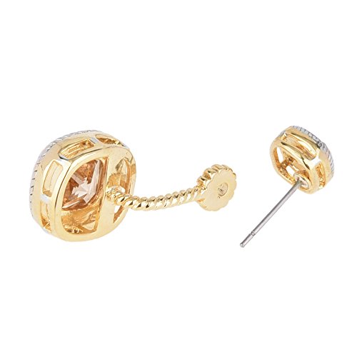 Features cushion cut CZ, earrings plated with gold & silver tone.