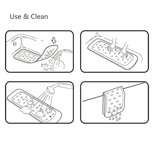 Anti Bacterial and Mildew Resistant:The non slip bath mat is anti-bacterial and has mildew-resistant properties which keep mildew away effectively. To avoid the growth of mold, please remove the mat from the tub after each use. Just lay it on the front edge of the tub when not used with the suction cups pointing up