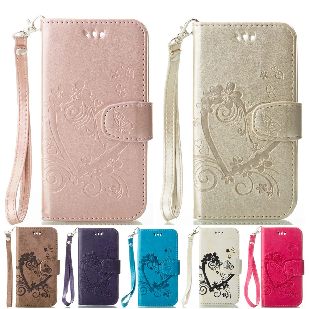 Features:Fashion Heart Flowers Wallet Flip Stand PU Leather Case