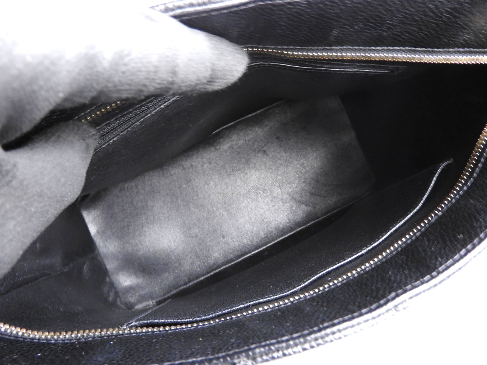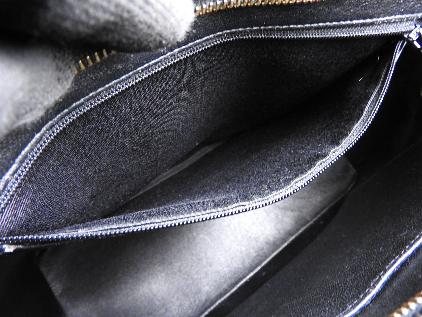 | Inside Pockets | Barely used feeling in the zip pocket. Used feeling and some scratches in the open pocket. |