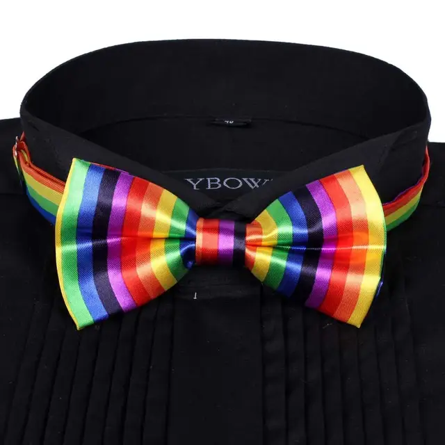 | [해외]핫 남성 새틴 나비 넥타이 디키 사전 묶여 웨딩 턱시도 넥타이 넥타이 수직 무지개 |