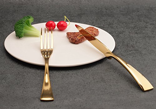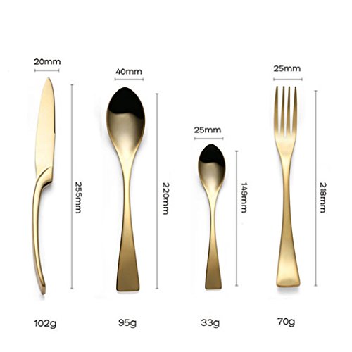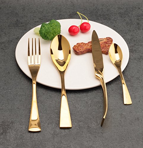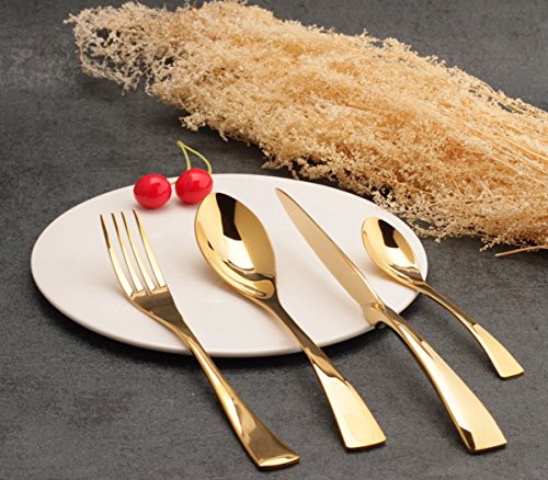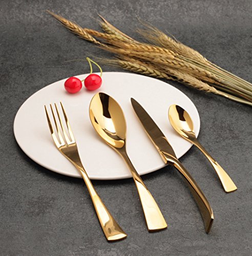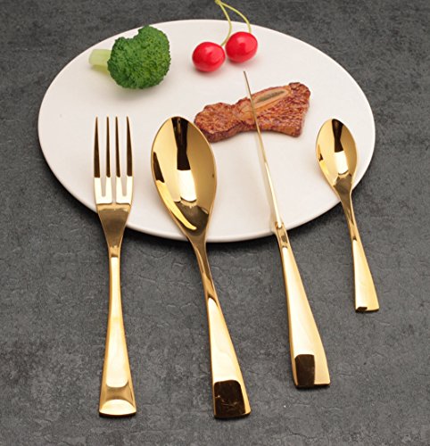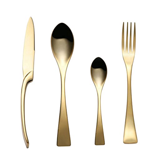 Onlycooker 4 Piece Stainless Steel Flatware Set Silverware Spoons Forks Knives Teaspoon Dinnerware Tableware Cutlery Gold