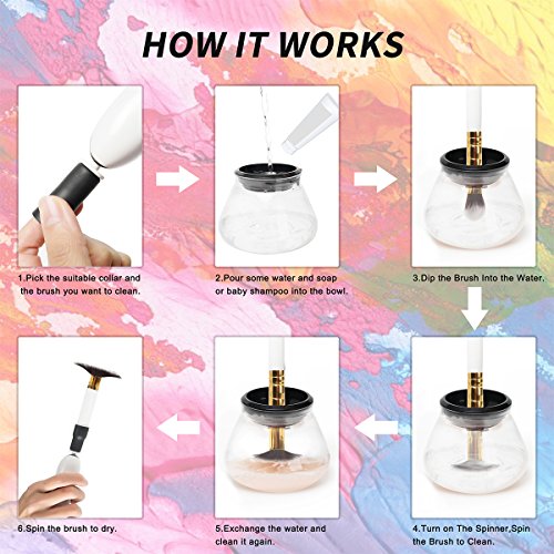 LWEMIN Makeup Brush Cleaner , Portable Cleaning and Drying Machine , Cleans and Dries Makeup Brushes in Seconds for All Size Makeup Brushes - Black