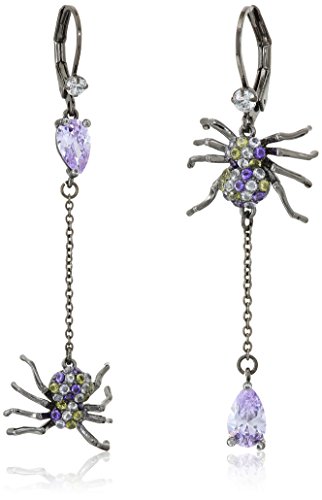hematite tone mismatched spider drop earrings with purple tonal stones