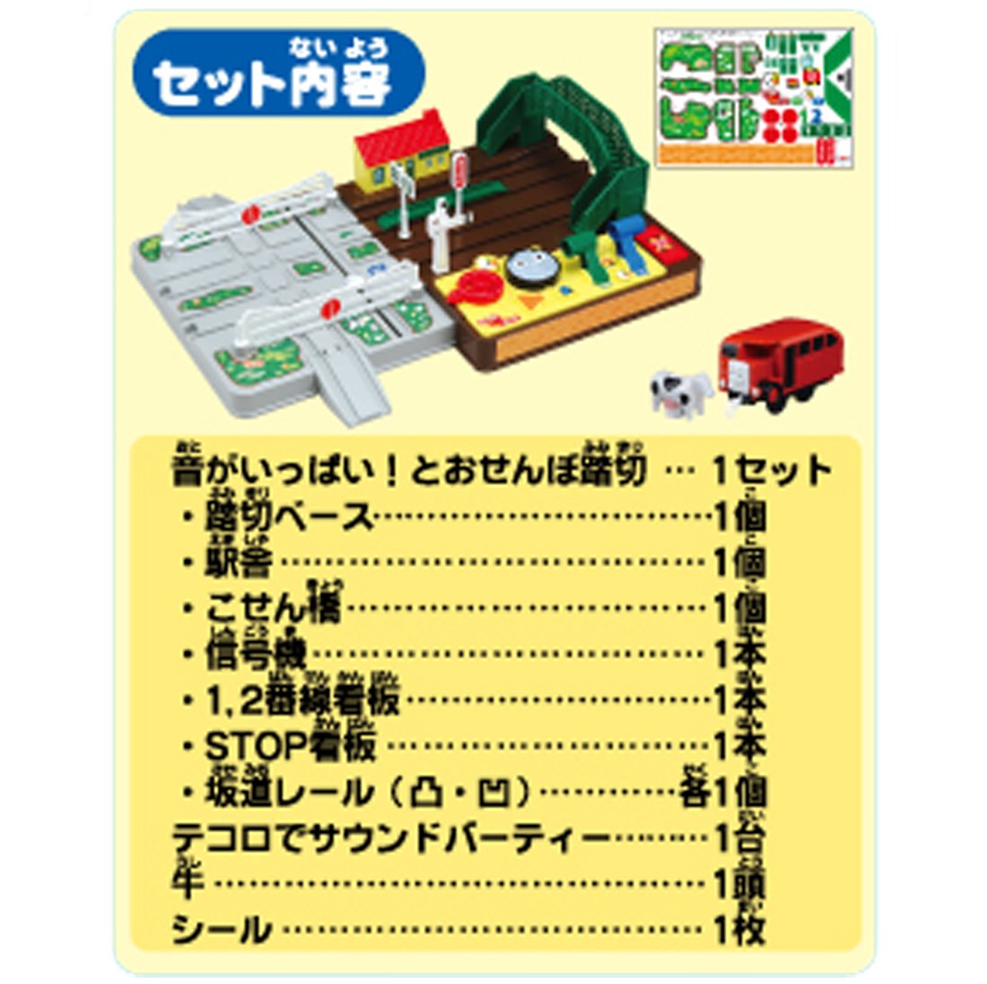 Open the railroad crossing and play with playing the soundbarty and cow by hand with the attached piece of dice.