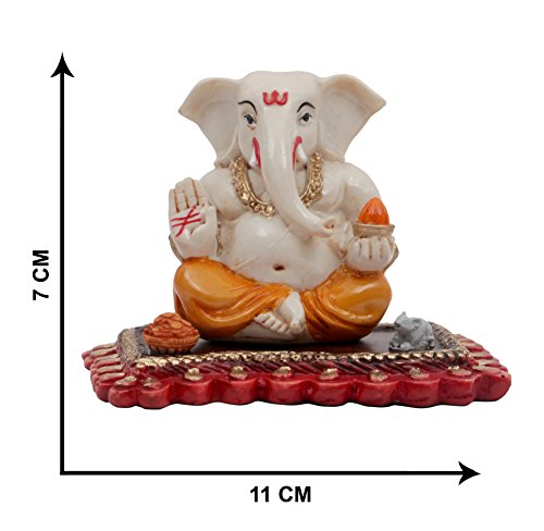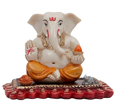 Studio : Affaires Publisher : Affaires Binding : Kitchen Product Description A beautifully Carved Ganesha of a calm Peaceful Meditating sculpted in resin powder.Place it in your living room and get praised for your exclusive choice. Lord Ganesha is known as God of wisdom, success and prosperity and is widely revered as the remover of obstacles. As the god of beginnings, he is honored at the start of rituals and ceremonies. This small ganesha showpiece is very well designed and finished which can be kept in car as well as at a home temple. This well finished miniature ganeshji is a great option for decoration on a festival, placing in worship area or gifting on various auspicious occasions. The Idol is made with High quality multicolored Poly Resin. A great gift idea for house warming's and festivals. 0