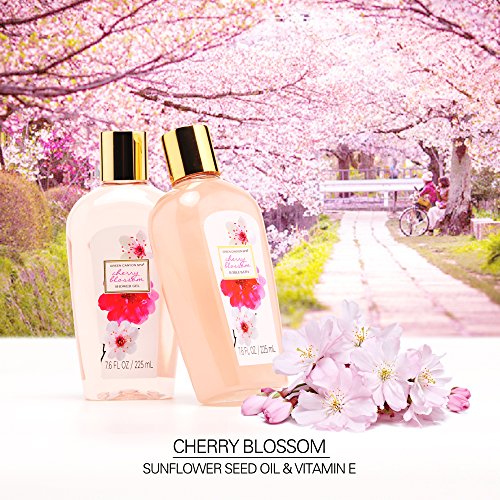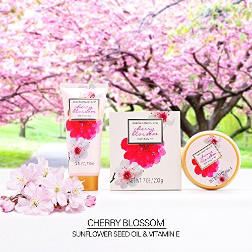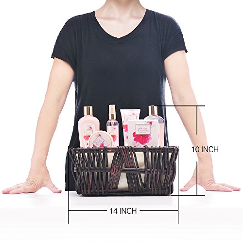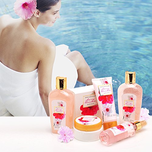 -. Feature : Awakens sensuality, seduces the senses and elevates mood / Fuses traditional therapies and fragrant aromatherapy taking your skin and senses to a whole new level / FRAGRANT CHERRY BLOSSOM: Get taken away with this refreshing and floral Cherry Blossom fragrance / Luxurious gift set includes:: shower gel, bubble bath, body mist, body lotion, body butter, bath salts, bath pouf and handcrafted unique natural wicker basket / Our unique and proP.R.Ietary bath and body formulations contain the finest ingredients. Nourishing ingredients such as Sunflower Seed Oil and Vitamin E help to moisturize and soften dry skin.