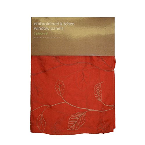 3 Piece Set of Embroidered Kitchen Window Panels (Red)