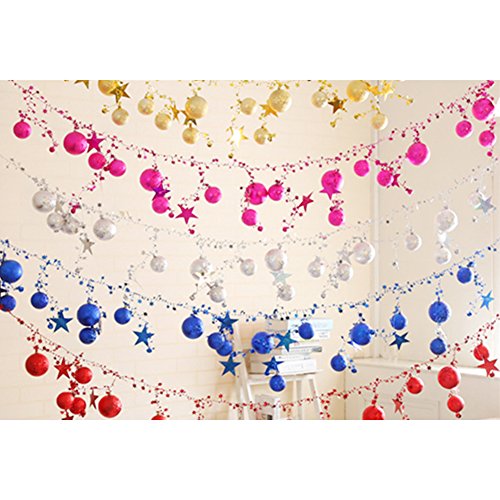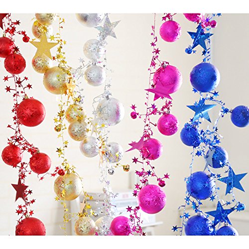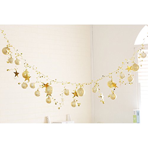 ZaH 18 Christmas Balls Ornament String Hanging Christmas Tree Decorations Star Bell Wall Window Home Decor 6' Long Xmas Ball Bunner for Wedding Party Yard Garden Gold