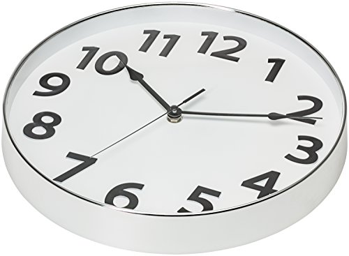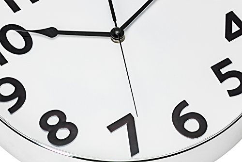 -. Feature : Decorate and enhance your office, bedroom, kitchen or any room in your living space with this beautiful wall clock / 12.5 Inches in diameter. Large black numbers against white face creates easy viewing from every angle / Silent non-ticking, sweeping movement mechanism. Precise quartz movements guarantee accurate time / Sturdy plastic case and glass lens, makes it easy to clean and keeps dust away from dial / Easy To Hang. Uses 1 "AA" battery - not included (Note: Plus side of your battery should be inserted first)