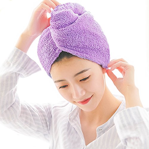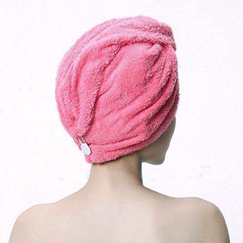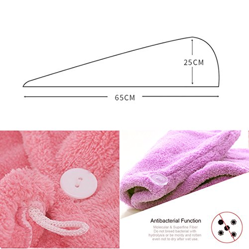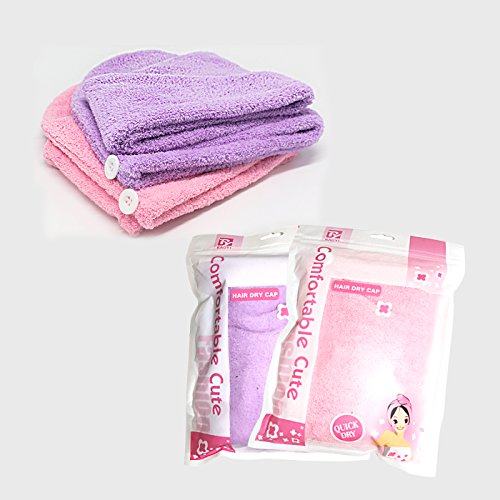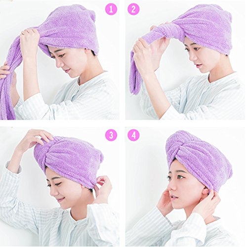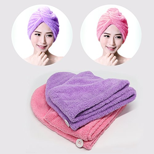 - 【Easy to Use】The design of a dry hair hat makes it easier to wear than a regular towel. First, use it to gently squeeze any excess water from your hair. Then, flip your head upside down and place the hair turban over your hair. Twist your hair in the towel, bring it to the back of your head, and secure the loop at the end of the towel to the button closure. Now you can feel free to do anything around your house with your hair up, from reading a book to doing the dishes.