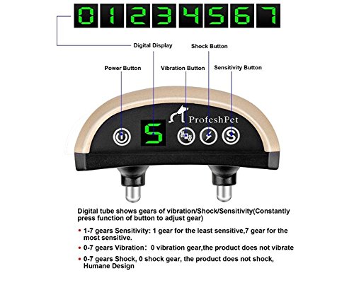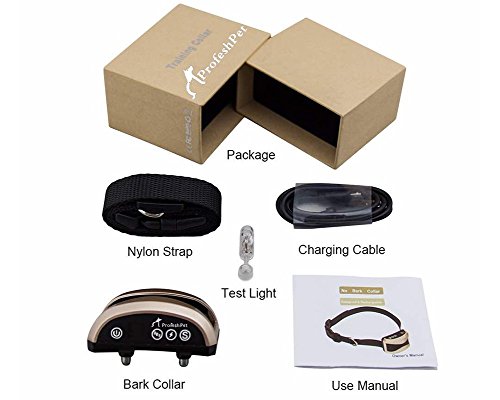 Studio : Profesh Pet Publisher : Profesh Pet Binding : Misc. Product Description Take control of your dogs barking problem with Profesh Pet's No Bark Collar. From constant yapping to the occasional "Woof", the Profesh Pet collar is here to help train all barking issues.? Features:?: Adjustable Settings??- 7 sensitivity levels give you options to best train your dog, 0-7 levels of Beep, Vibration and Static Shock give you the freedom to adjust setting best suited for your pet's needs!? Durable Design? - The Tear Resistant Nylon was our choice for this collar because of its long lasting durability! We added a reflective strip to ensure the safety of your pet in low day-light situations. It is adjustable so you can put it around your dog both big and small!? Rechargeable Battery? - Avoid the frustration of finding and replacing batteries. The Profesh Pet Bark Collar is rechargeable, simply plug in the included cable into your computer or USB adapter. A full charge lasts between 14-20 days!? Intelli-Chip? - Our chip only activates the collar when your dog bark's, so other animals cannot trigger the collar.? Optional Safe Static Shock ?- This shock setting can be turned off, but is recommended for larger and/ or stubborn dogs. It is safe to use and alerts your pet of its actions. As your training progresses you can lower the sensitivity.?? Package Includes:? No bark receiver Adjustable Nylon Collar Test Light USB Charging Cable Instruction's Free Whistle Note: ?You should be able to fit two fingers between the collar and your pet. This prevents the collar from being triggered by other pets and vibration from the pet being trained. The two finger trick makes sure your pets collar is neither too tight or too lose. Never tie your pet's leash to the bark collar. 0