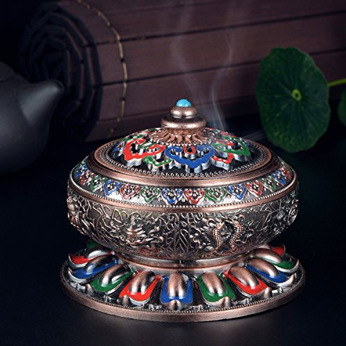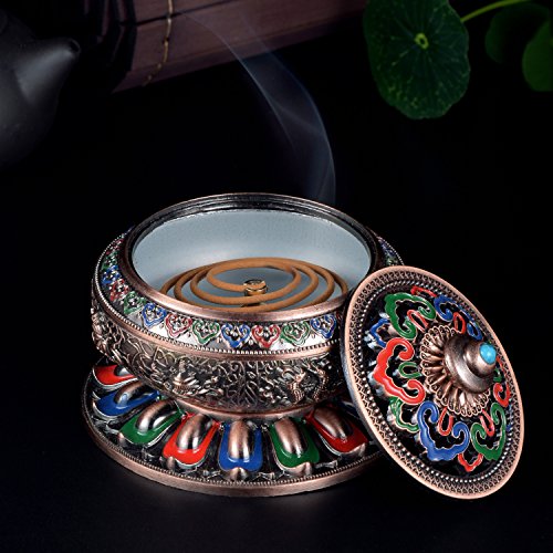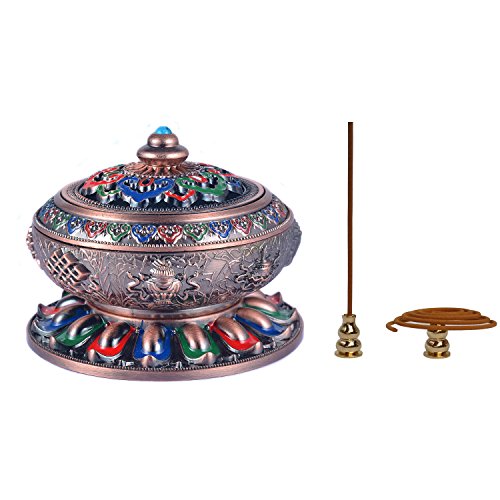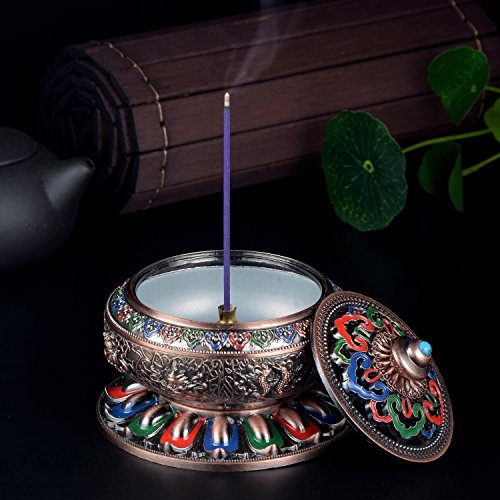 Incense Burner with Brass Calabash Incense Stick Holder - Chinese Cloisonné Copper Alloy Burner for Use with Stick Cone or Coil Incense