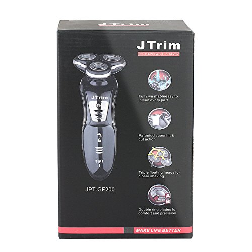 Electric Shaver For Men & bald head shavers By JTrim 3DFLEX Wet dry System Cordless Rotary Shavers Electric Razor With Sideburns Trimmer JPT-GF200 Jay's Products JTrim Ultimate Shaving Experience , Comfortable Closest, Smoothest Shave, The JTrim High Quality Men Shaver has three floating razor , heads ,individually reflex action system can always get close to the facial contour to effectively shave the hair of any lengths and in any growing directions Cordless Waterproof Electric Shaver, And Low Noise Stand Rechargeable Time 8H ,Use Time 45min ,110V-240V US Plug , 1 Year warranty Electric Shavers, Electric Rotary Shaver , men shaver, cordless shaver, wet and dry shaver, Rechargeable shaver, wet dry electric shaver, wet dry electric razor, electric razors for men, bald head shaver,Feature