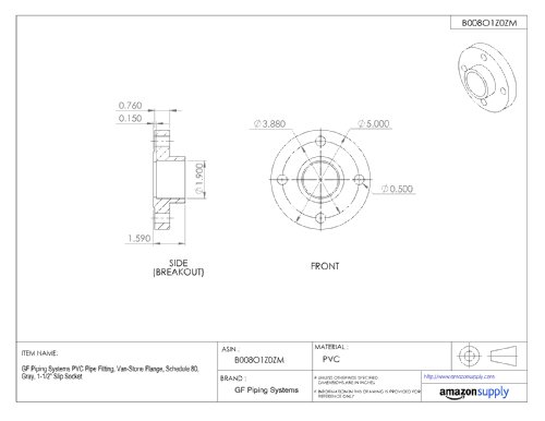 GF Piping Systems PVC Pipe Fitting, Van-Stone Flange, Schedule 80, Gray, 1-1/2" Slip Socket