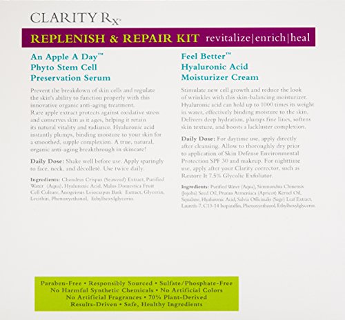 This kit includes: .5 oz. An Apple A Day Phyto Stem Cell Preservation Serum and .5 oz. Feel Better Hyaluronic Acid Moisturizing Cream