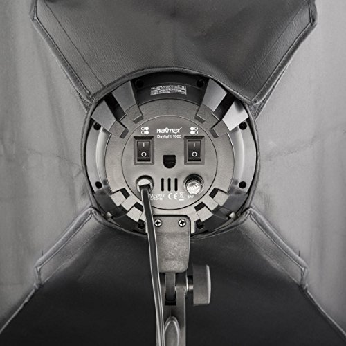 Lieferumfang: Walimex Daylight 1000 mit Softbox 50x 70cm und Frontdiffusor sowie 4 50W Spiral-Tageslichtlampen