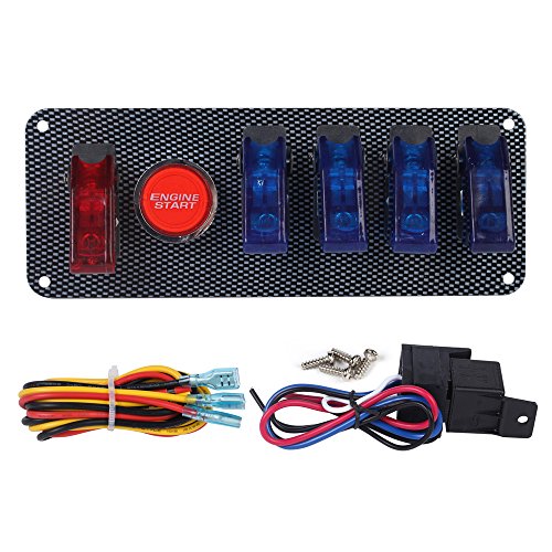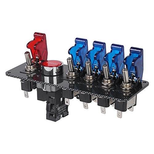 Studio : LeaningTech Publisher : LeaningTech Binding : Misc. Product Description Specifications: Part name: 5 switch button 1 ignition Reset switch Color: Multicolor(Black,Red,Silver,Yellow,Blue and so on) Material:ABS Plastic Copper Voltage: 12V LED color: Red Blue Total Size: approx. 175 x 66mm/6.89 x 2.60" (L x W) Weight: 464g