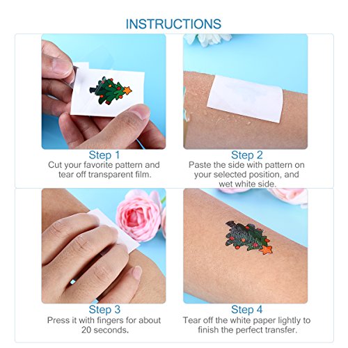 Features - Brand: Tinksky - Color: Shown in the pictures - Material: Transfer paper - Size: Approx. 3.5 x 3.3 x 3cm/ 1.37 x 1.29 x 1.18 1.6 inch (LxWxH) - Diverse Design: 18 different types in 4 sets, which includes Santa Claus, reindeer, snowflake, snowman, jingle bell, Christmas tree, Santa hat, gingerbread man and more, enough patterns for your options. - Wide Application: Waterproof and sweat-resistant, can be used on: skin, pottery, metal, glass and so on. - Application Method: Select your desired pattern. Tear off the tattoo paper. Stick the front of pattern on your skin. Use a damp cloth or sponge gently wipe the stickers until wet, keep pushing forcibly about 20S or so. - Cleaning method: Rub gently with a lotion, BB oil or alcohol until the tattoo completely disappear, then you can remove the pattern of tattoo paper.