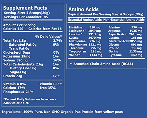 ✔BENEFIT FROM HIGHEST QUALITY VEGAN-BASED PROTEIN. Packed with numerous essential ingredients including 15+ types of amino acids, anti-inflammatory compounds and iron. It's free of soy, dairy, gluten and GMO's and is also hypo-allergenic. Easily dissolved in liquids and with more protein per serving than Whey, few foods can match the nutrition provided by Pea Protein.