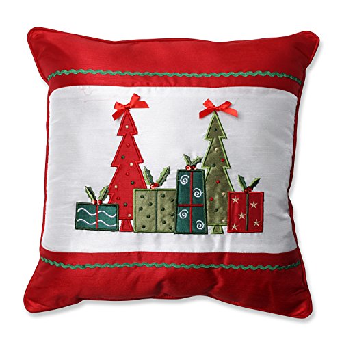Bring the merriment of Christmas morning into your home with this jovial throw pillow. Presents and Christmas trees are intricately embroidered on the front and finished with bow and rickrack detail. The back is a solid snow white. Perfect for the room in your home where you open presents, this seasonal pillow will delight for years to come.Feature