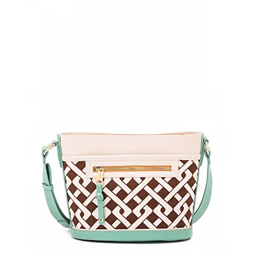 -. Feature : Signature linen with genuine leather accents -Adjustable leather shoulder strap / Double back pocket with interior snap closure and exterior zip closure -Linen interior with zip pocket and two open pockets / Width: 11" -Length: 8.25" -Depth: 5.5" / Handle Drop: 10.75" (shortest)