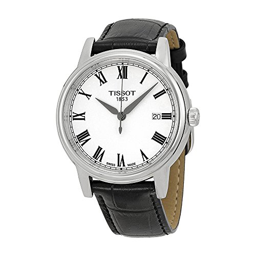 -. Feature : Tissot Carson white dial black leather men's watch / Date display at the 3 o'clock position. Quartz movement. Scratch resistant sapphire crystal. Pull/push crown / Swiss-quartz movement / Case diameter: 40mm / Water resistant to 99 feet