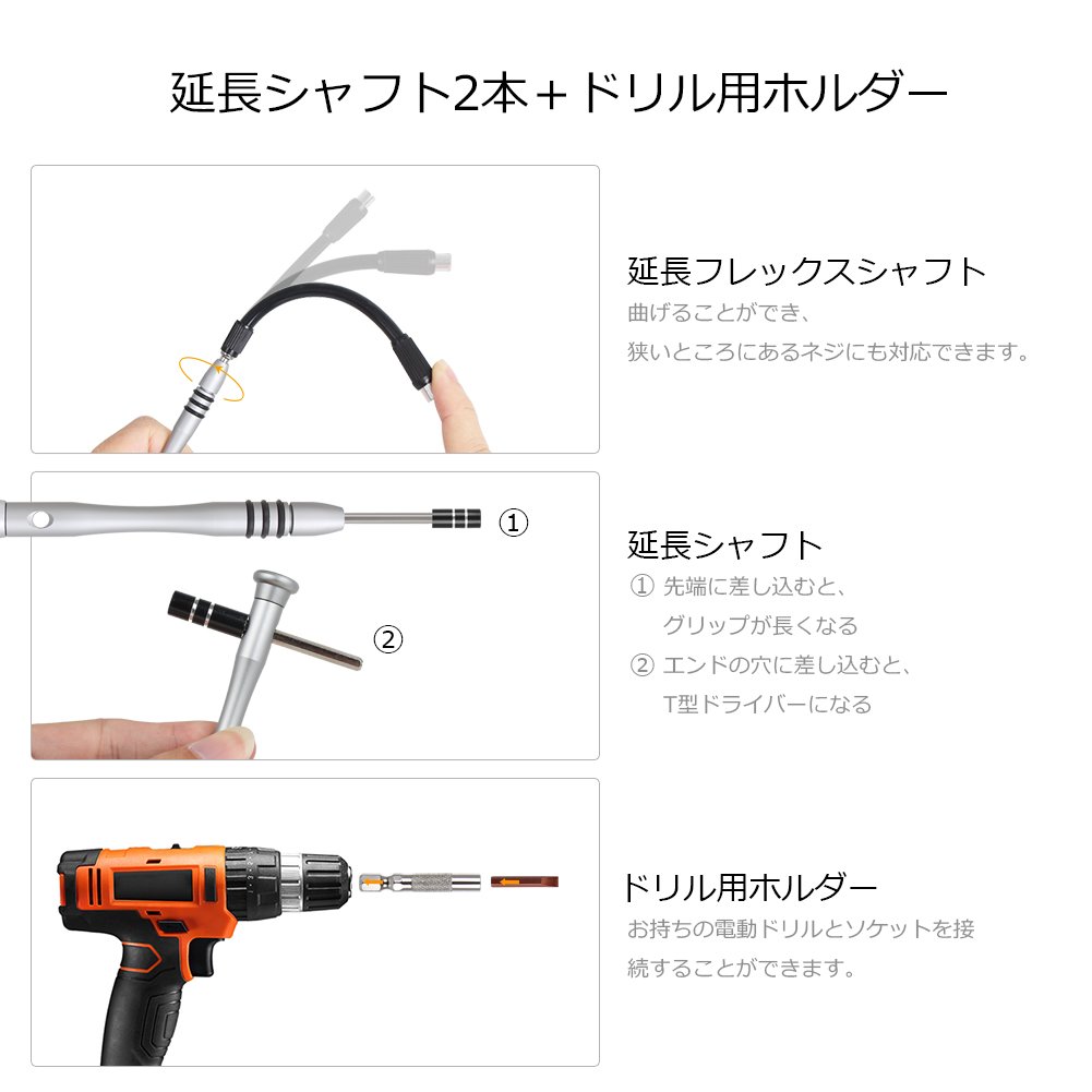 With extended shaft and drill holder, you can work easily in a narrow place where ordinary drivers do not reach.