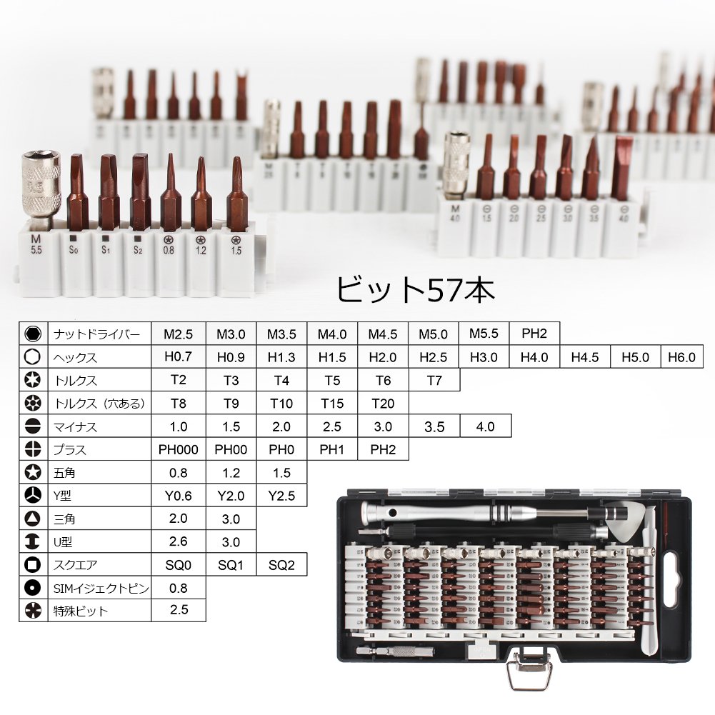 There are abundant 57 kinds of bits, and it can correspond to various screws.