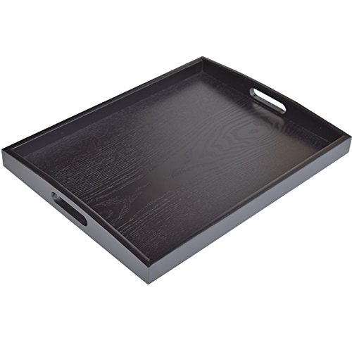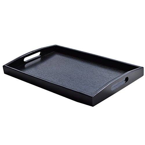 Kidcia Wood Tray With Handle Serving Tray Serving Platters Easy Arrangement Wooden Tray Gift Idea Interior Decoration-Black(14.2x9.1x1.6'')