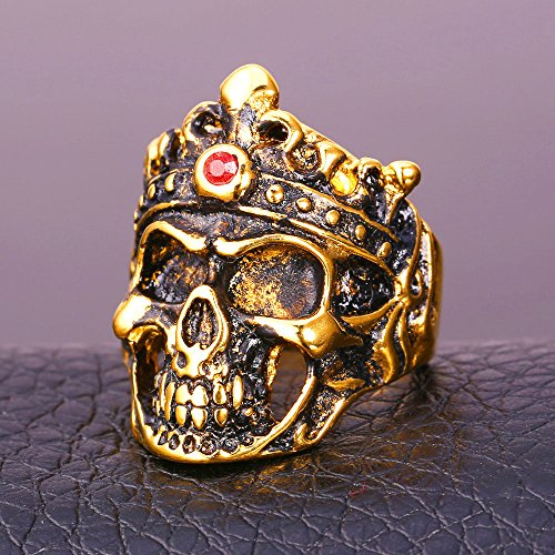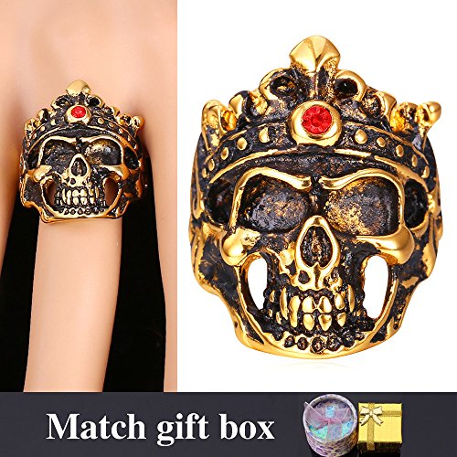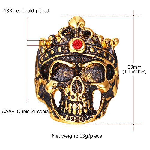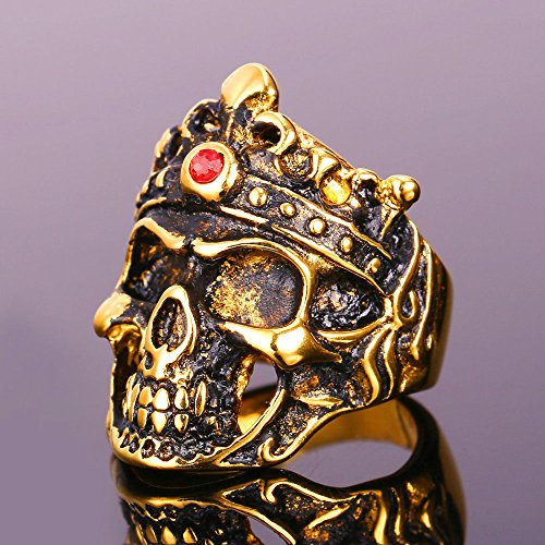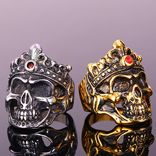 -. Title : U7 Jewelry Vintage Gothic Skull Biker Stainless Steel Men's Ring (Size 8 to 13)