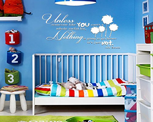 UNLESS Dr Seuss Inspired Quote Vinyl Wall Decal [WHITE] by GMDdecals Lorax Truffula Trees Design 28" x 12" Children Bedroom Cat in the Hat Nursery Decor