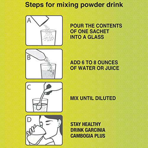 -. Feature : LOSE WEIGHT NATURALLY:60% HCA (Hydroxycitric Acid) This type of acid is known for its ability to suppress the appetite, including cravings for sugars and carbohydrates reduction. / AIDS WITH DIET PLAN:As you aim to eat healthier and lean, Garcinia aids with weight control, and promotes metabolism. / YOU GET A WHOLE MONTH'S SUPPLY:The box you will receive includes 30 individual packs that are very easy to carry with you in your bag anywhere you go! Use 1 each day and combat cravings in the most effective, purest way! / VERY EASY TO PREPARE:Preparing your richly flavored, delicious, energy boosting drink will take no more than a couple of minutes! All you have to do is rip the powder packet open, empty the powder in a glass, fill it with 6 or 8 oz. of water or juice,dilute it and enjoy. As simple as that! / BEST GARCINIA CAMOGIA - PURE NATURAL EXTRACT - WEIGHT LOSS DIET
