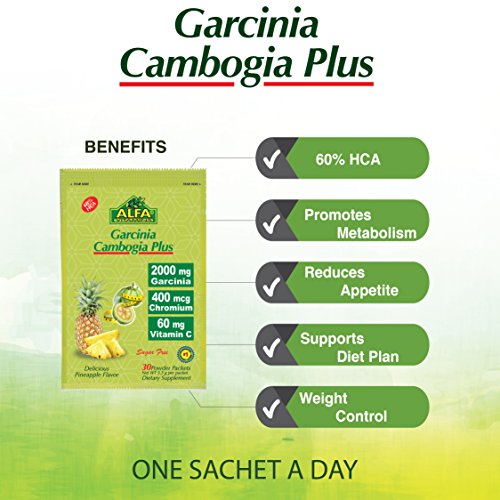 -. Title : BEST Garcinia Cambogia 2000mg per Serving - 60%HCA PLUS Chromium 400mcg - Powder Supplement By ALFA VITAMINS - Premium Quality Source of WEIGHT LOSS,VitaminC 100%DV -PURE NATURAL FAT BURNER-30 Sachets
