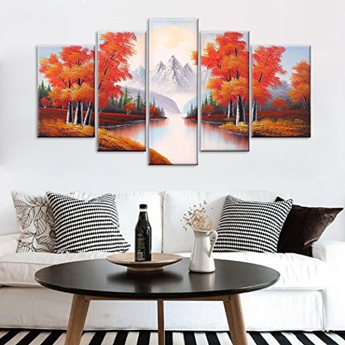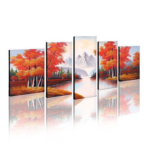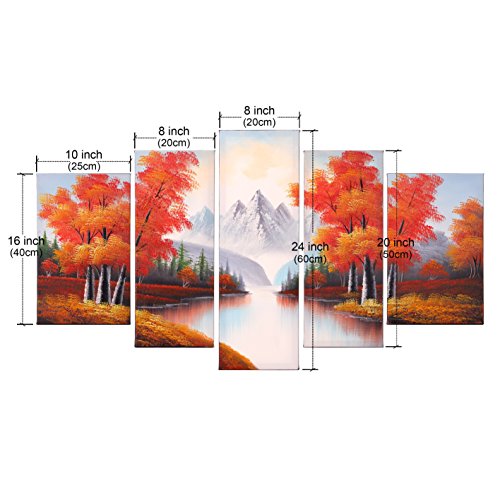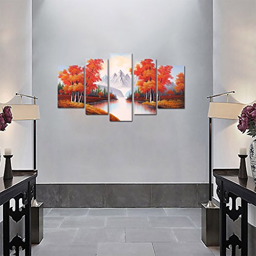 -. Title : VASTING ART 5-Panel 100% Hand-Painted Oil Paintings Landscape Maple Trees Forest River Mountain Modern Abstract Artwork Stretched Wood Framed Ready Hang Home Decoration Wall Decor Living Room Bedroom